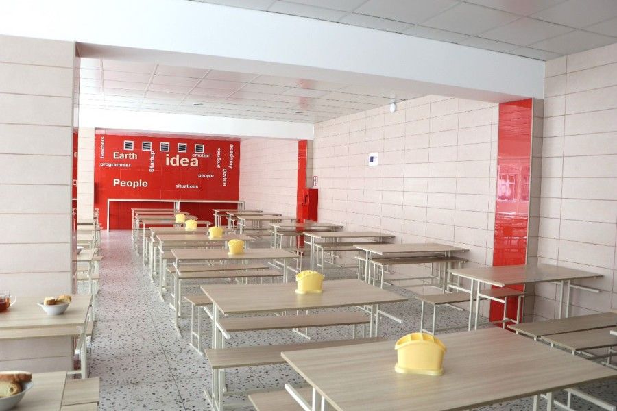 У харчоблоці працюють п’ять кухарів, які щодня готують для 700 учнів. Їдальня розрахована на 258 дітей одночасно, з урахуванням потреб дітей з особливими освітніми потребами. Оплатити обід можна як готівкою, так і карткою.