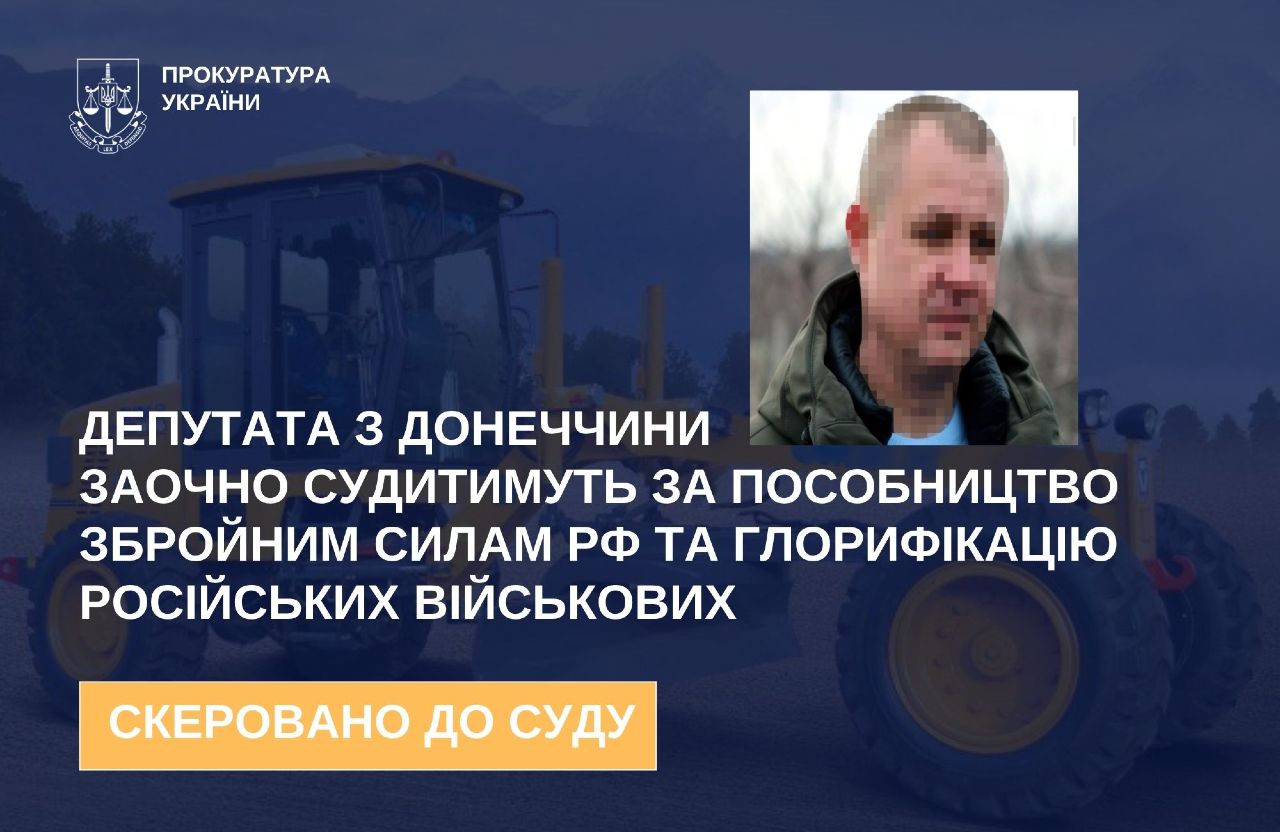 Депутата з Донеччини заочно судитимуть за пособництво армії РФ та глорифікацію окупантів