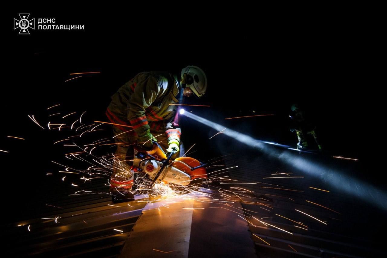 Внаслідок падіння уламків безпілотника у Полтавському районі було пошкоджено складське приміщення одного з цивільних підприємств. Сталася пожежа, яку оперативно ліквідували підрозділи ДСНС. На щастя, обійшлося без постраждалих.
