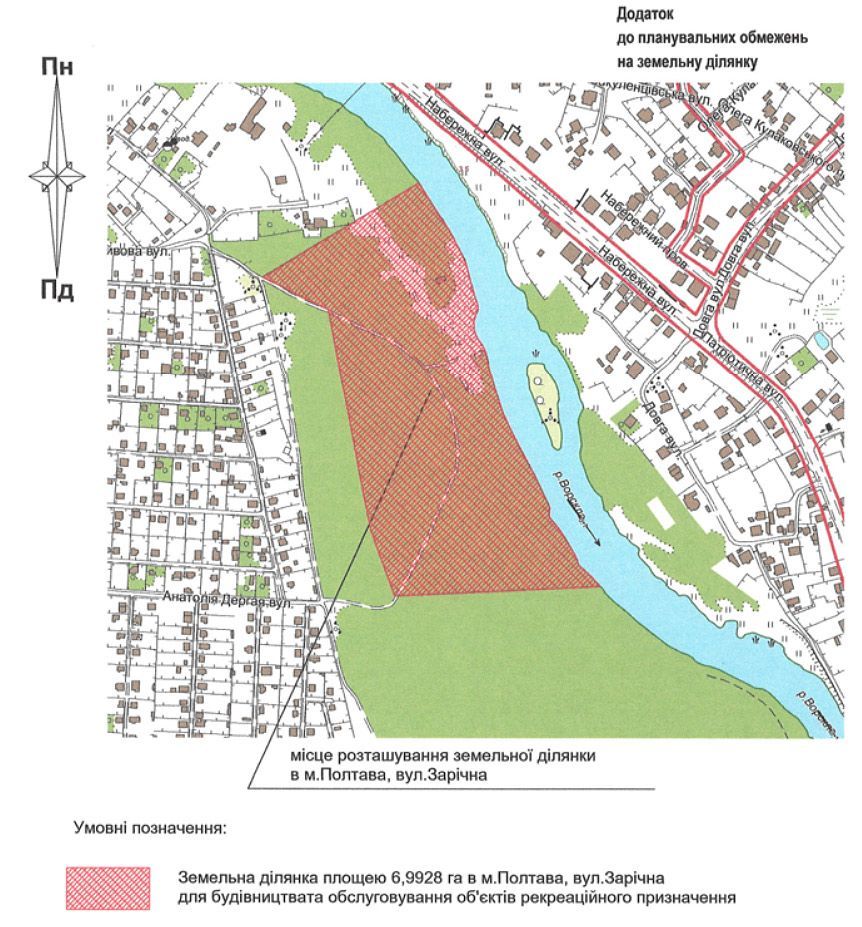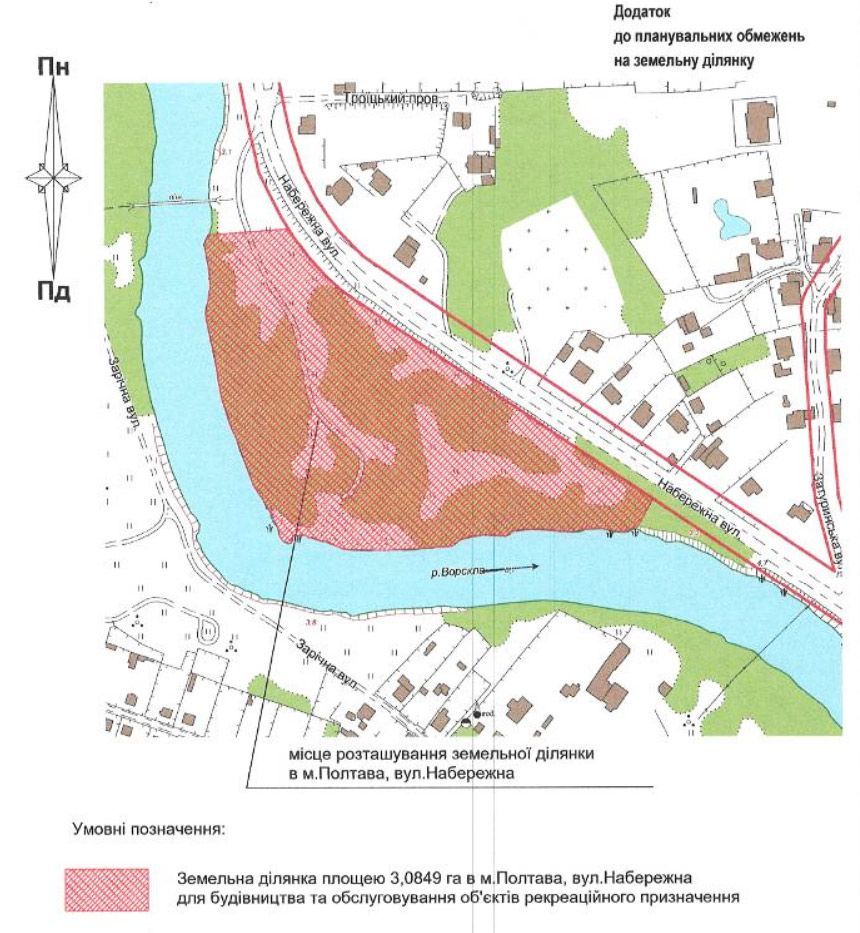Ділянка площею 3 гектари на вулиці Набережній. Тут частково облаштований пляж, раніше стояли альтанки під оренду відпочивальникам.