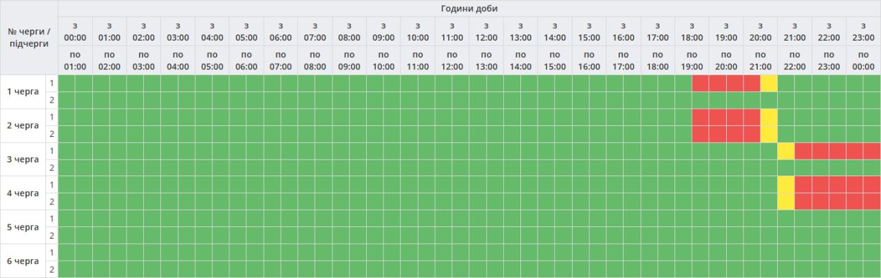 За інформацією АТ «Полтаваобленерго», запланований ГПВ передбачає наступне чергування: