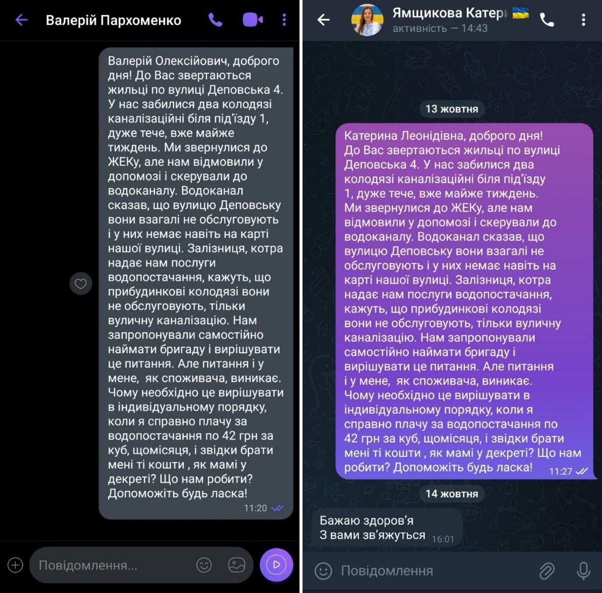 За словами Світлани, мешканці звернулися за допомогою до в.о. міського голови Катерини Ямщикової, до першого заступника міського голови Валерія Пархоменка. Перша пообіцяла, що хтось вийде на зв’язок із мешканцями, але цього так і не сталося. Другий не відповів на повідомлення.