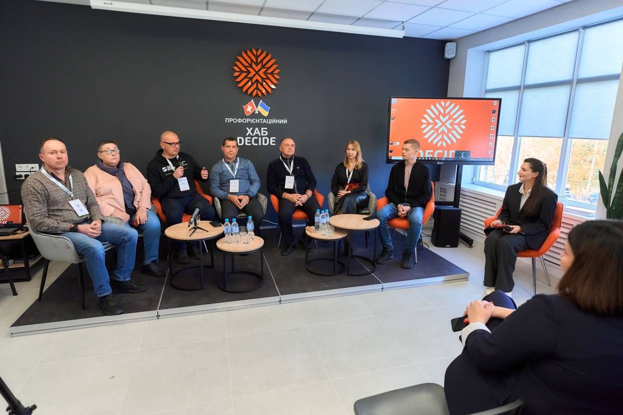«Цей хаб створений завдяки підтримці Швейцарії. Його ідея — стати платформою для співпраці між освітою, бізнесом та владою. Учні можуть спробувати різні професії, відвідати майстер-класи, поспілкуватися зі студентами та представниками бізнесу, а потім побачити роботу фахівців на підприємствах», — розповіла менеджерка проєкту DECIDE Валентина Полторак.