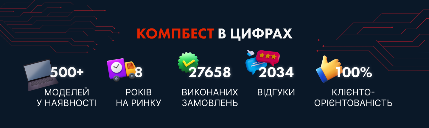 Якщо вам потрібен ігровий ноутбук Київ з RTX 3060, RTX 4050 або потужніші моделі, консультанти Compbest допоможуть підібрати оптимальну конфігурацію.