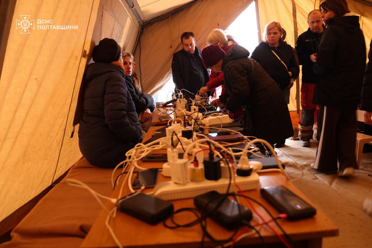 У Кременчуці комунальні служби продовжують відновлення критичної інфраструктури. Для підтримки населення розгорнуті стаціонарні та мобільні пункти незламності, де громадяни можуть зігрітися, зарядити телефони та отримати гарячі напої.