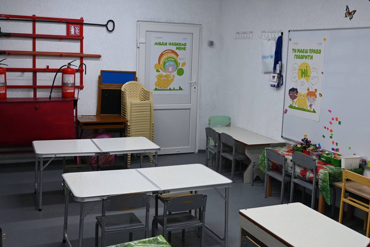 Укриття обладнане всім необхідним. Є і зручні ліжечка, санітарні кімнати, запас технічної та питної води, індивідуальні рюкзачки та бейджики на випадок евакуації, аптечка. Також встановили потужну витяжку, пожежну сигналізацію, основне та резервне освітлення та очисник повітря, який постійно фільтрує й очищує потік повітря. У приміщеннях наявні магнітні дошки, ігрові куточки.