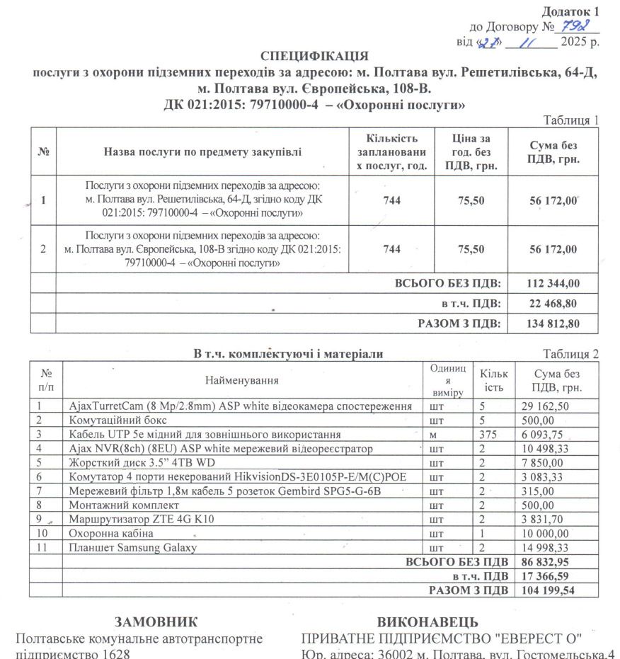 Охоронці почнуть чергування вже відзавтра. Вартість послуги становить 181,2 грн за годину за два підземні переходи (1488 годин охорони до кінця року).