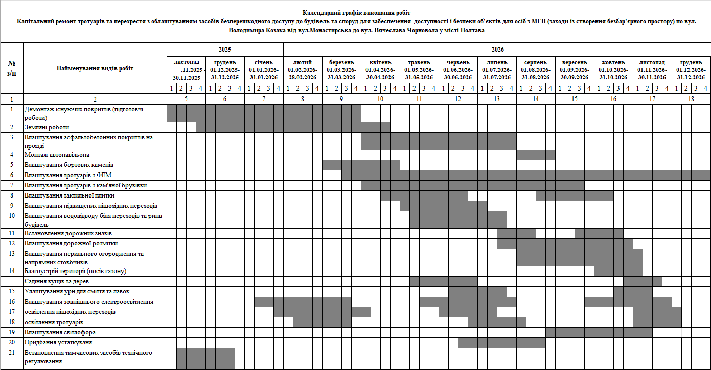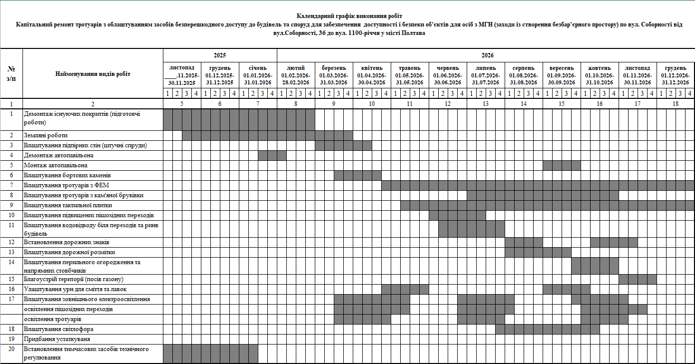 - Вулиця Соборності: від будівлі міськради до вулиці 1100-річчя Полтави (ціна договору — 20,6 млн грн).