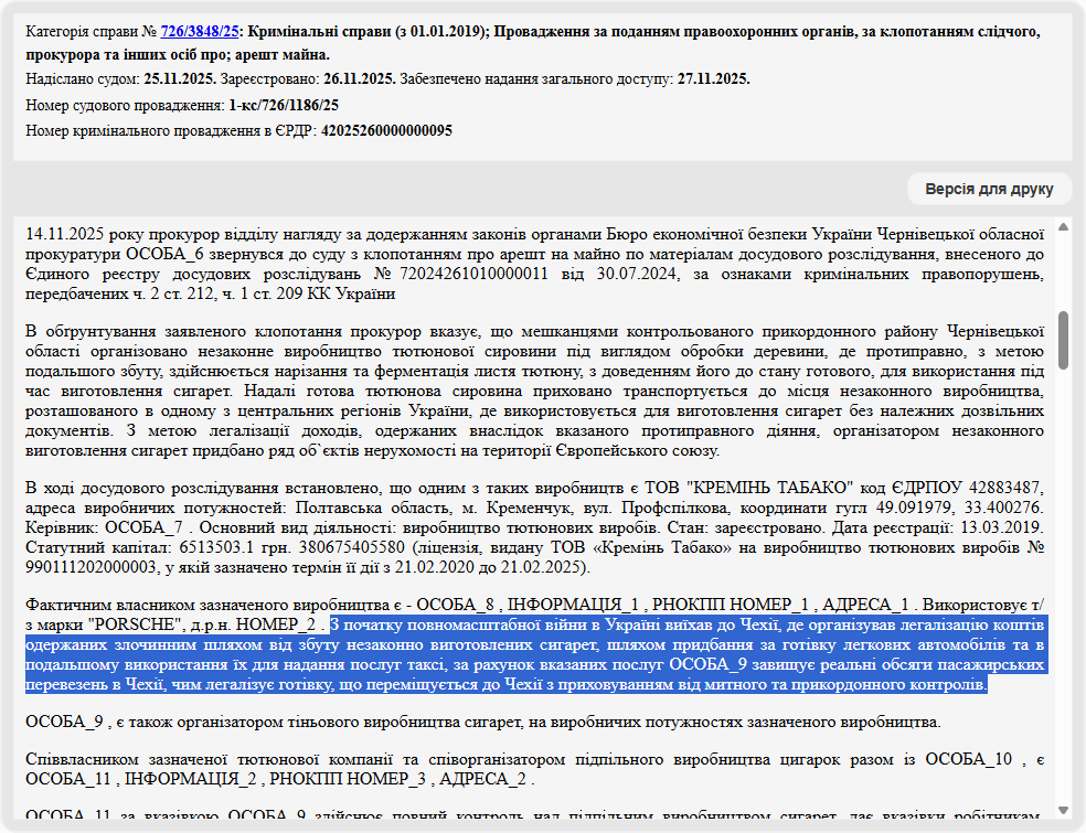 Чернівецький апеляційний суд ухвалою від 1 грудня 2025 року поставив крапку в питанні арешту майна, вилученого у справі про масштабне підпільне виробництво сигарет у Кременчуці.