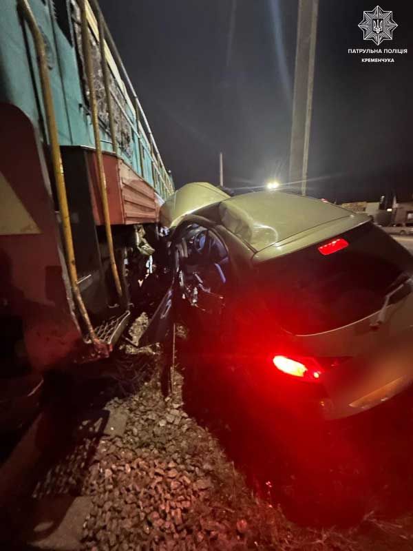 На залізничному переїзді в Кременчуці авто виїхало на червоне та потрапило під тепловоз