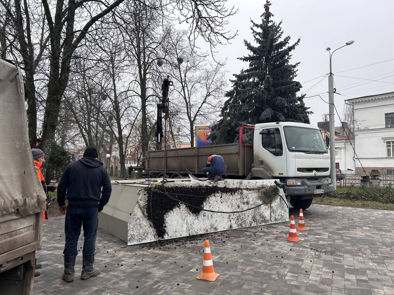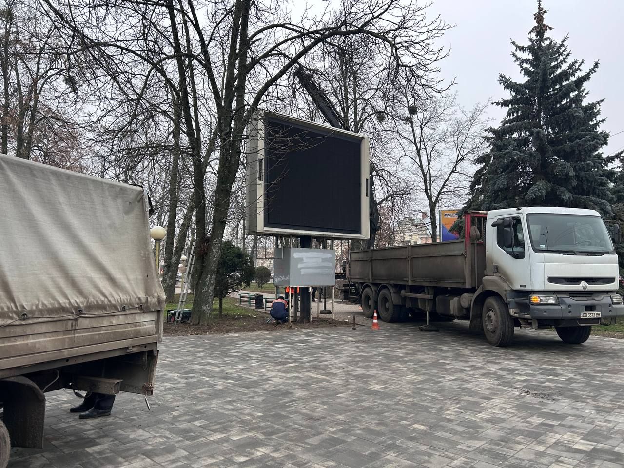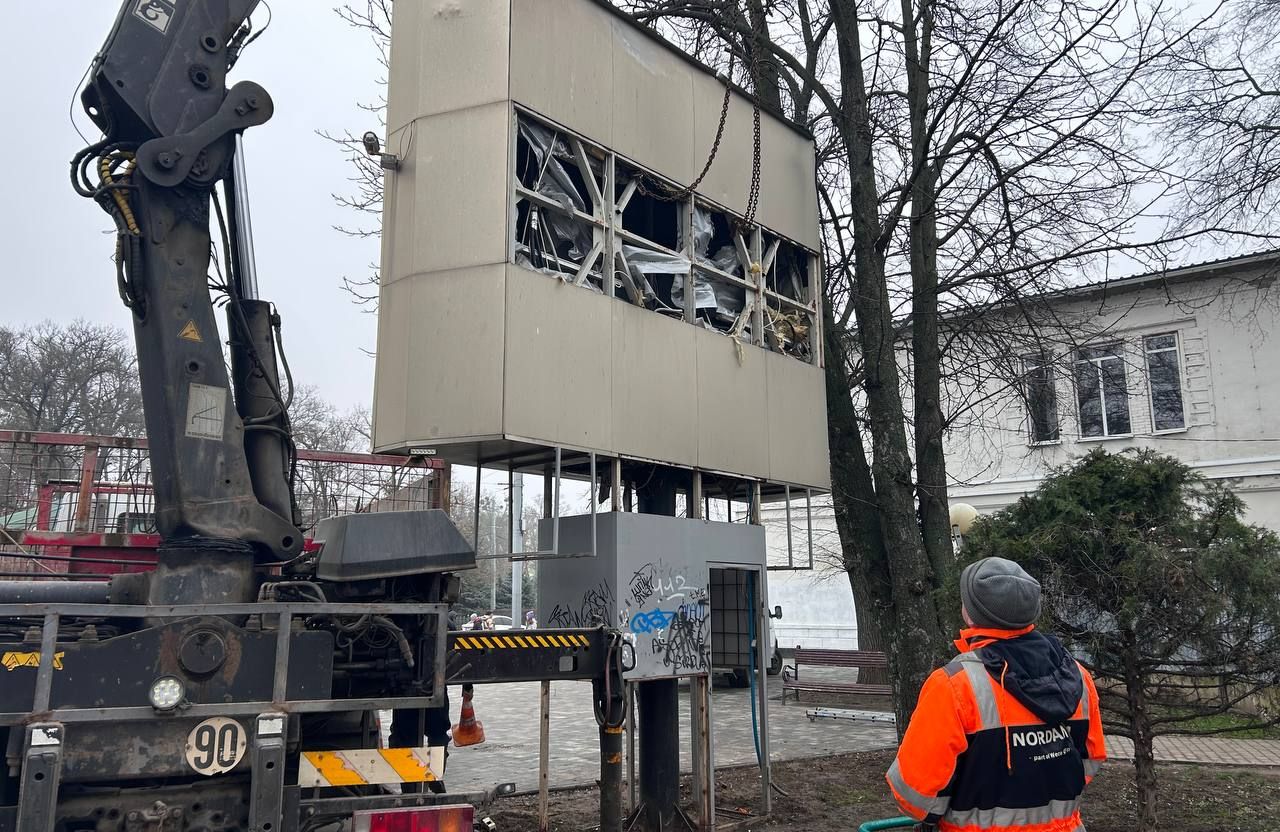 У центрі Полтави демонтували непрацюючий екран біля кінотеатру Котляревського