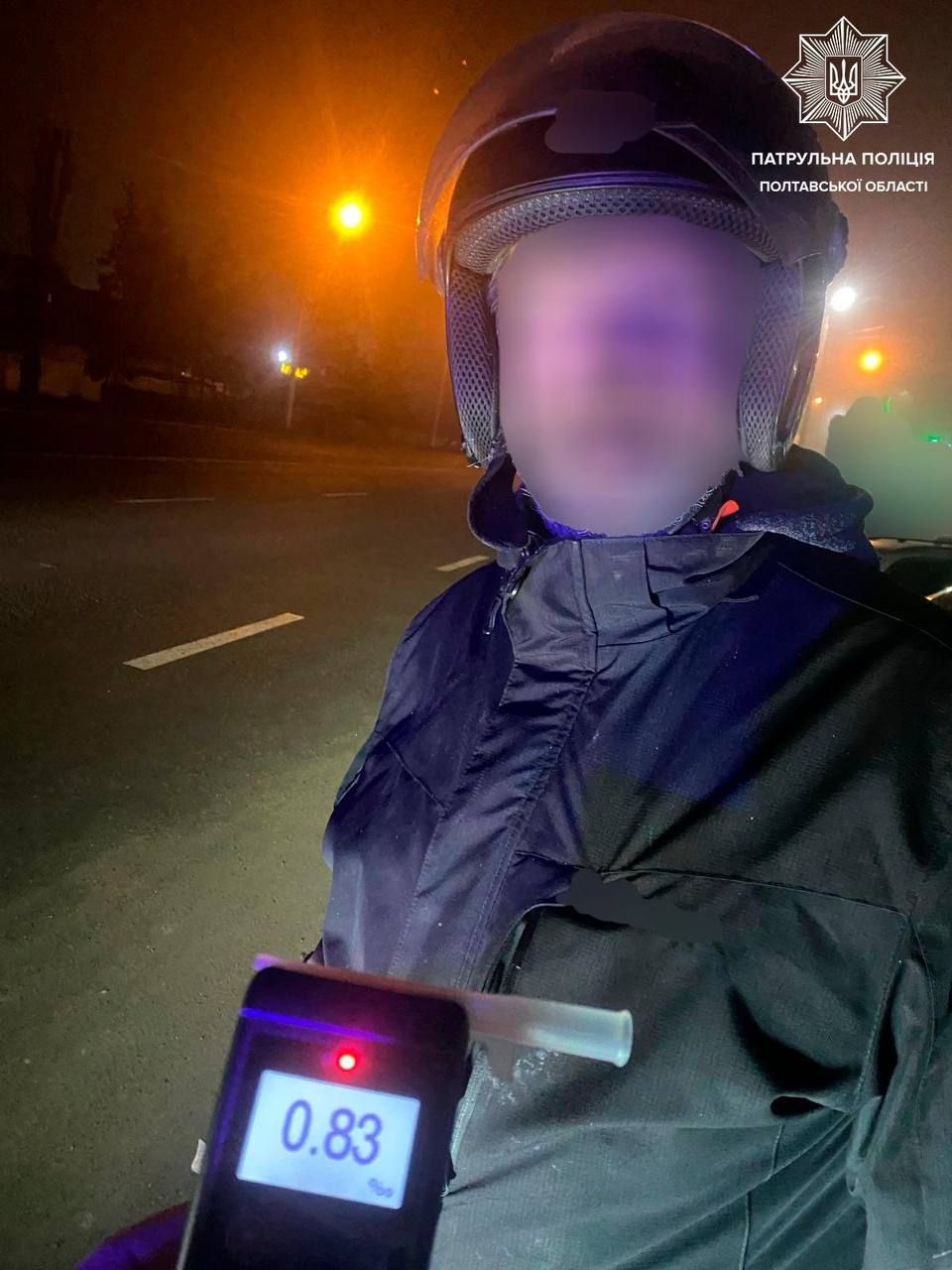 Під час спілкування патрульні помітили ознаки алкогольного сп’яніння. Огляд на місці за допомогою приладу «Драгер» показав 0,83 проміле. Це у понад чотири рази перевищує максимально допустиму норму.
