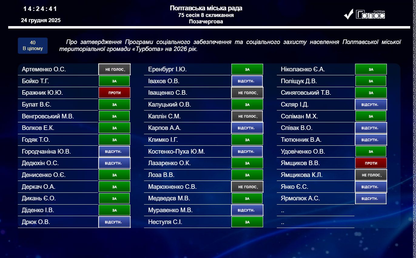 15:46 — Депутати Полтавської міської ради затвердили проєкт бюджету на 2026 рік.