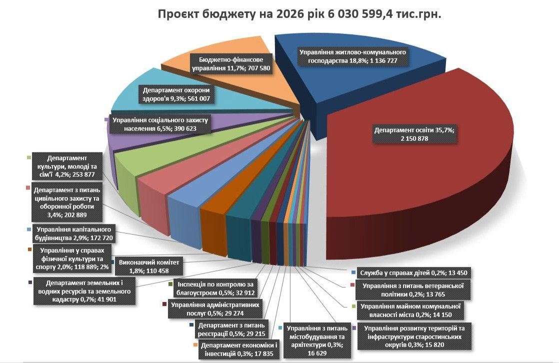 - Департамент освіти: 2 млрд 150 млн грн (35,7%);