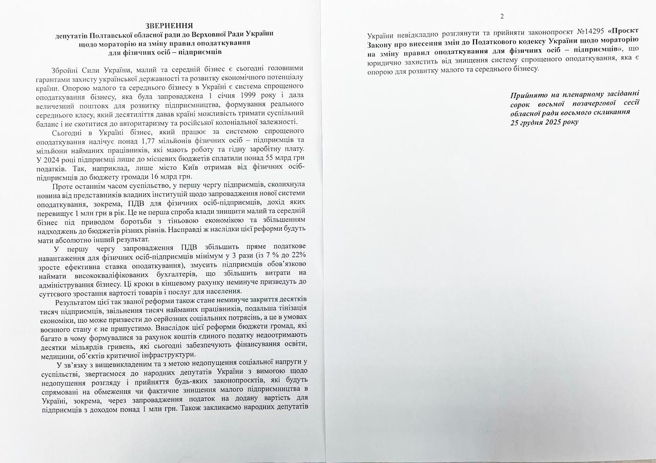 Фракція «Батьківщина» підкреслила необхідність збереження зрозумілих і передбачуваних правил оподаткування та закликала центральні органи влади ухвалювати рішення з урахуванням реального стану економіки й інтересів територіальних громад.