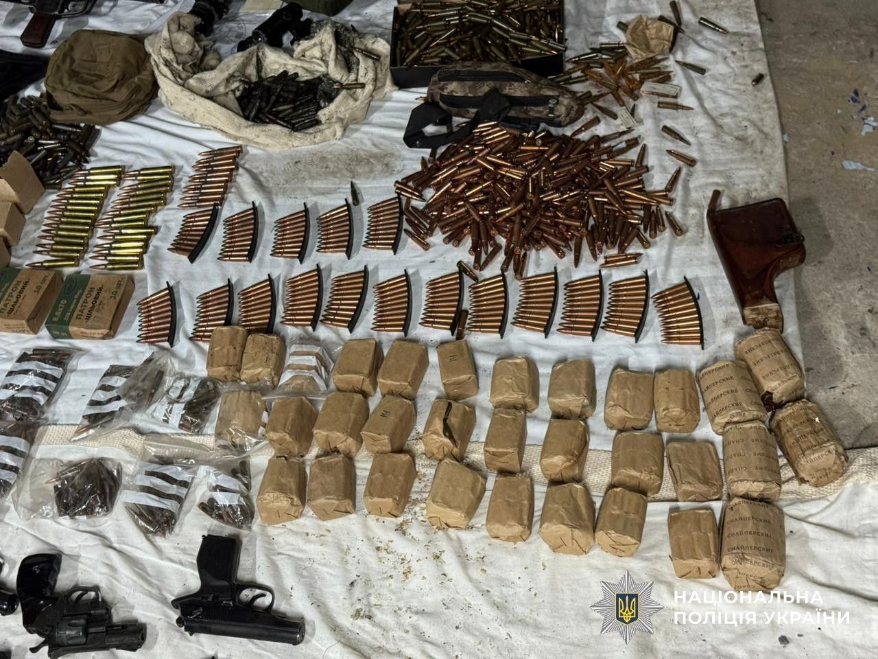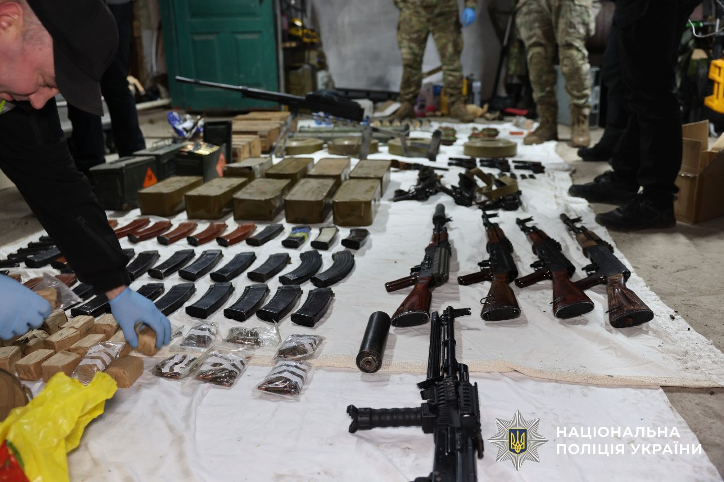 Під час слідчих дій виявили схрон зі значним арсеналом: 48 автоматів Калашникова, 26 пістолетів Макарова, 4 кулемети, 8 одиниць іншої нарізної вогнепальної зброї, 4 гранатомети та 31 постріл до них, 8 мін, 76 гранат, майже 26 тис. набоїв різного калібру, запали, підривачі, детонатори, близько 21 кг вибухівки, а також глушники, димові шашки, багнет-ножі та споряджені магазини. Окрім цього, вилучено понад 3000 євро готівкою та автомобіль.