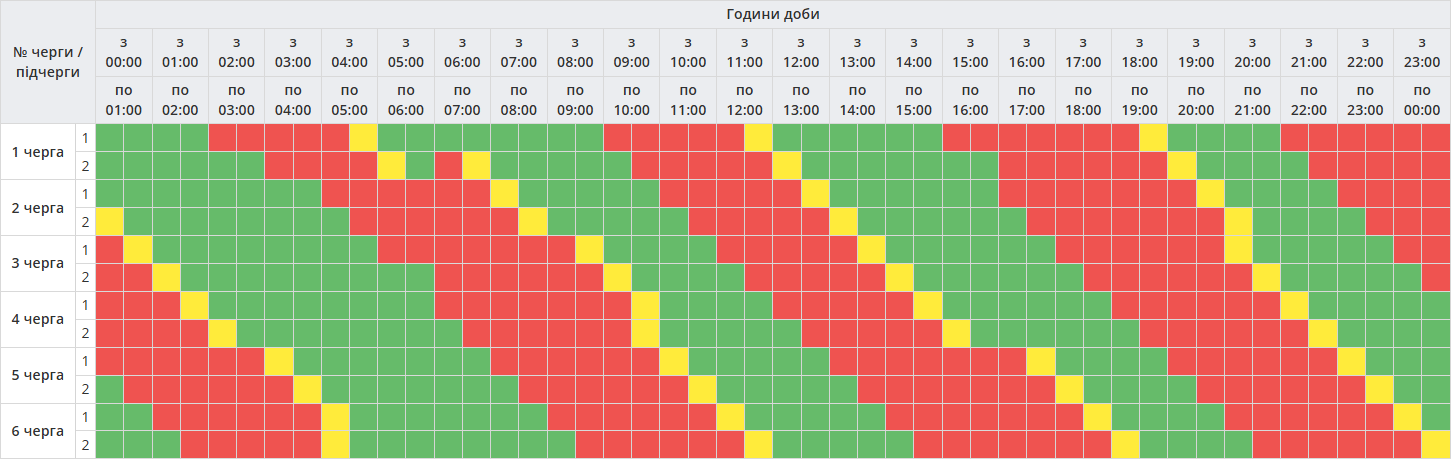 За інформацією АТ «Полтаваобленерго», запланований ГПВ передбачає наступне чергування: