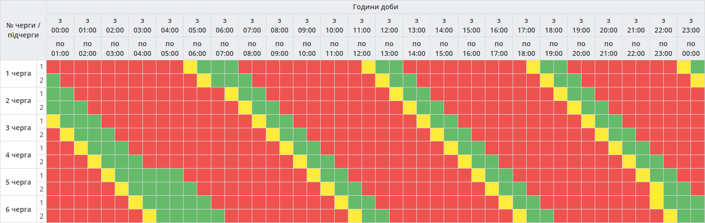 За інформацією АТ «Полтаваобленерго», запланований ГПВ передбачає наступне чергування: