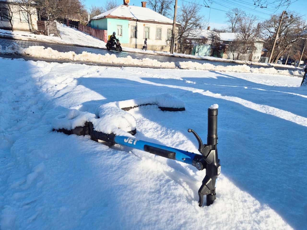 Власники сервісів прокату JET та Rooh після початку зими не забрали свій транспорт із вулиць. Електросамокати залишили просто неба, де вони припадають снігом і псуються.