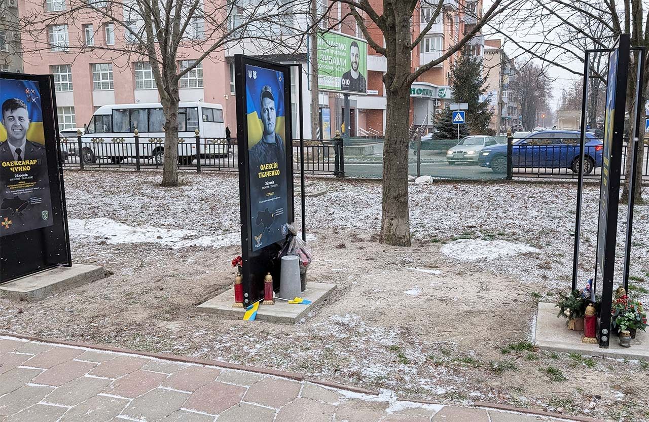 За інформацією КП «Декоративні культури», монтаж двох відновлених конструкцій із портретами захисників провели 9 січня. Водночас станом на 12 січня комунальникам ще залишається відновити пошкоджену секцію паркану.