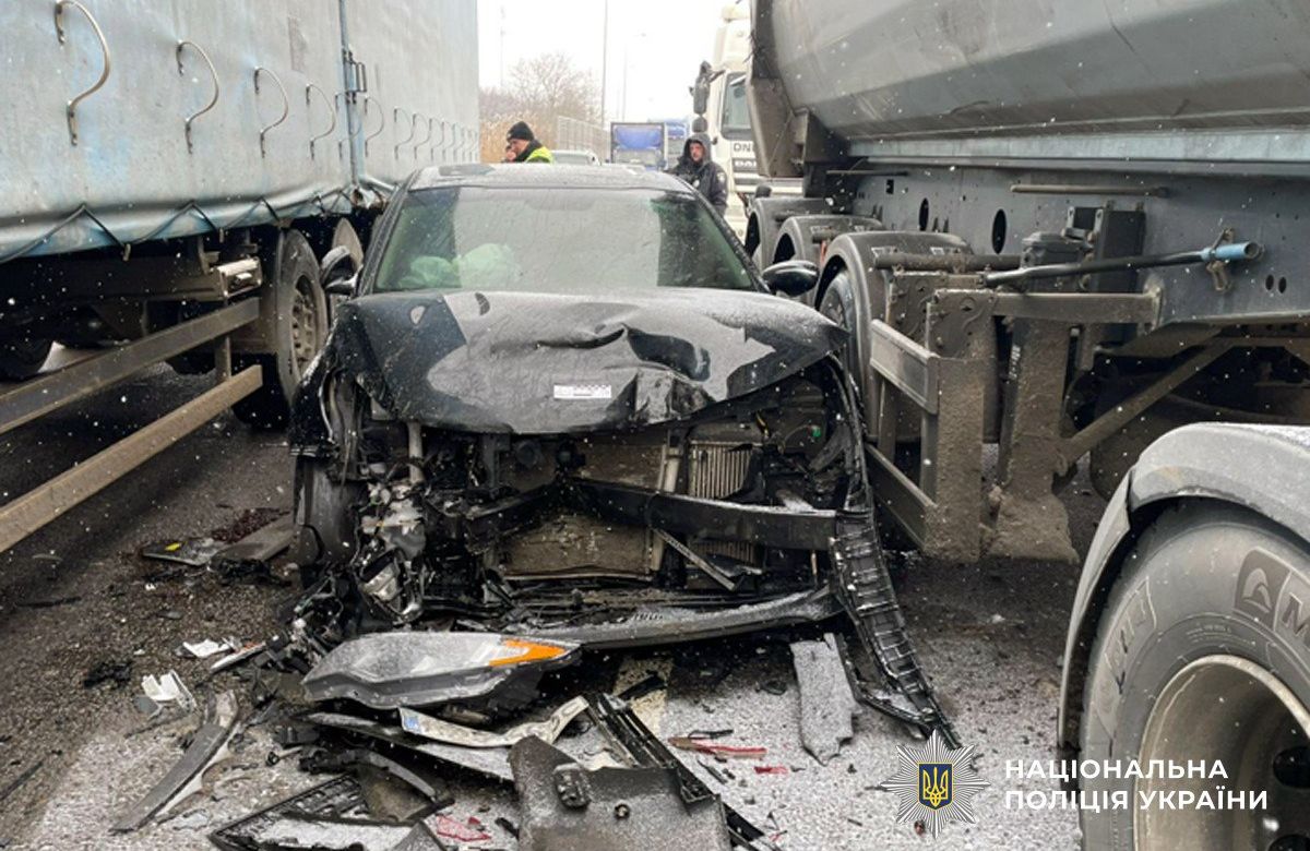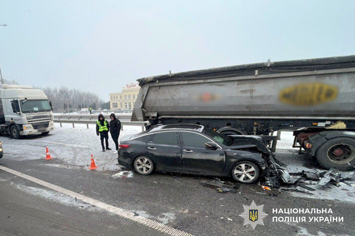 За двадцять хвилин, близько 14:00, майже на тій же ділянці дороги сталася ще одна автопригода, у якій зіткнулися три транспортні засоби. Попередньо встановлено, що автомобіль Kia Optima під керуванням 24-річного водія зіткнувся з Renault Master, за кермом якого перебував 41-річний чоловік. Від удару Kia відкинуло на вантажівку DAF, що рухалася у попутному напрямку.