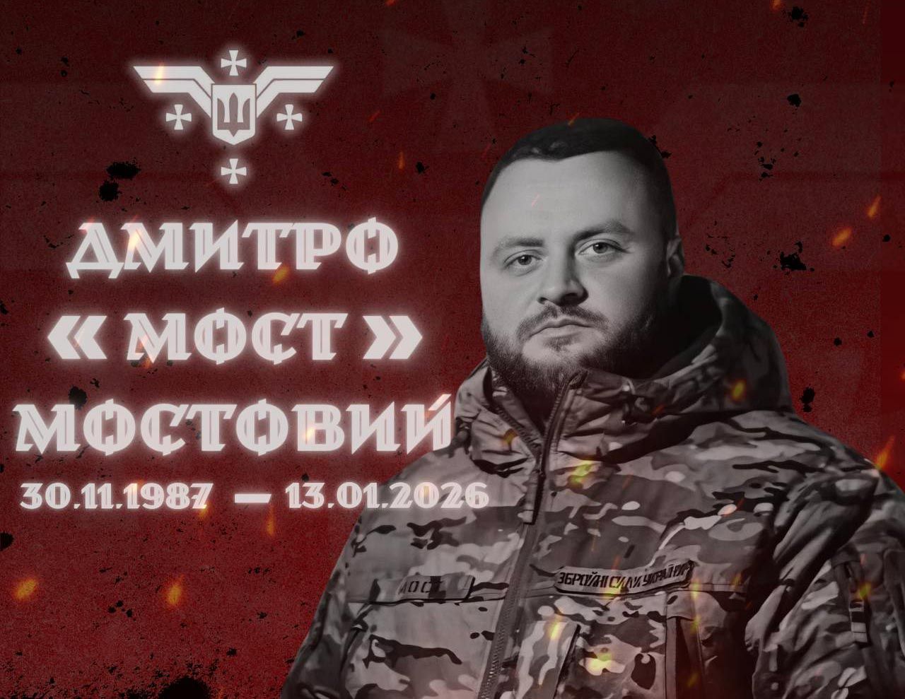 За інформацією Полтавської міської ради, 13 січня 2026 року у госпіталі міста Києва помер Мостовий Дмитро Петрович — молодший сержант, командир екіпажу безпілотних авіаційних комплексів підрозділу Solovey 116-ї окремої бригади ТрО.