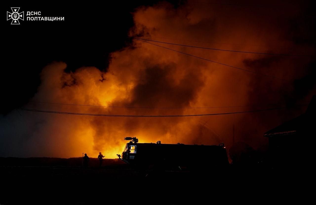 За даними ДСНС, на території Полтавської області росіяни завдали удару по промисловому об’єкту. Внаслідок обстрілу виникли пожежі на кількох локаціях. Рятувальники оперативно ліквідували займання.