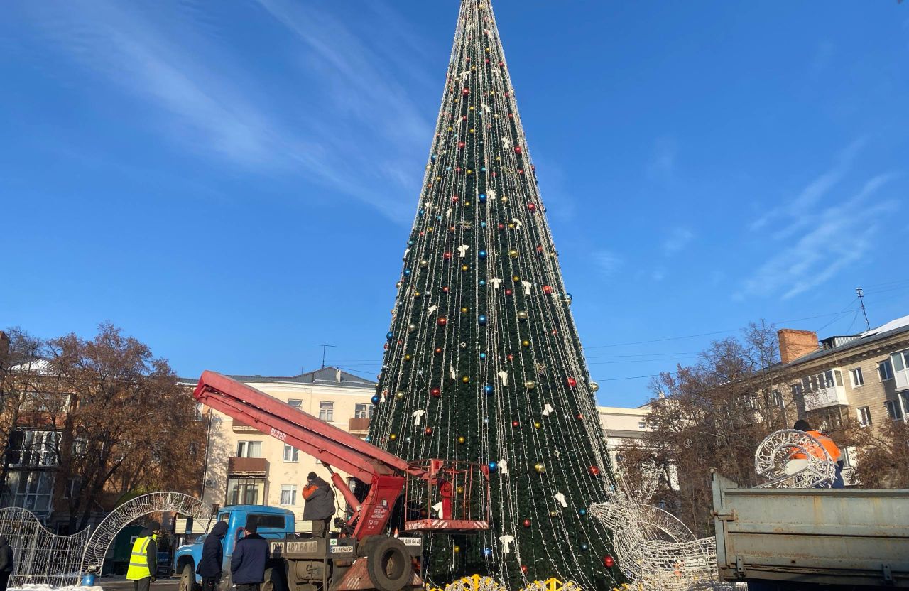 У центрі Полтави розпочали демонтаж головної ялинки та святкової ілюмінації