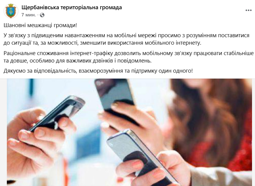 Керівництво Щербанівської територіальної громади звернулося до місцевих жителів із проханням раціонально використовувати ресурси мобільного зв’язку.
