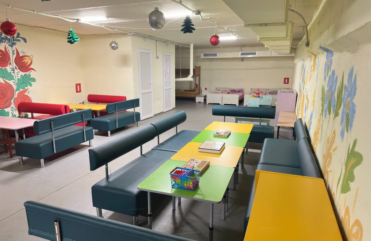 Укриття стандартне. Є світло, вода, аптечка, приміщення тепле. Простір поділений між групами — загалом базові умови забезпечені.