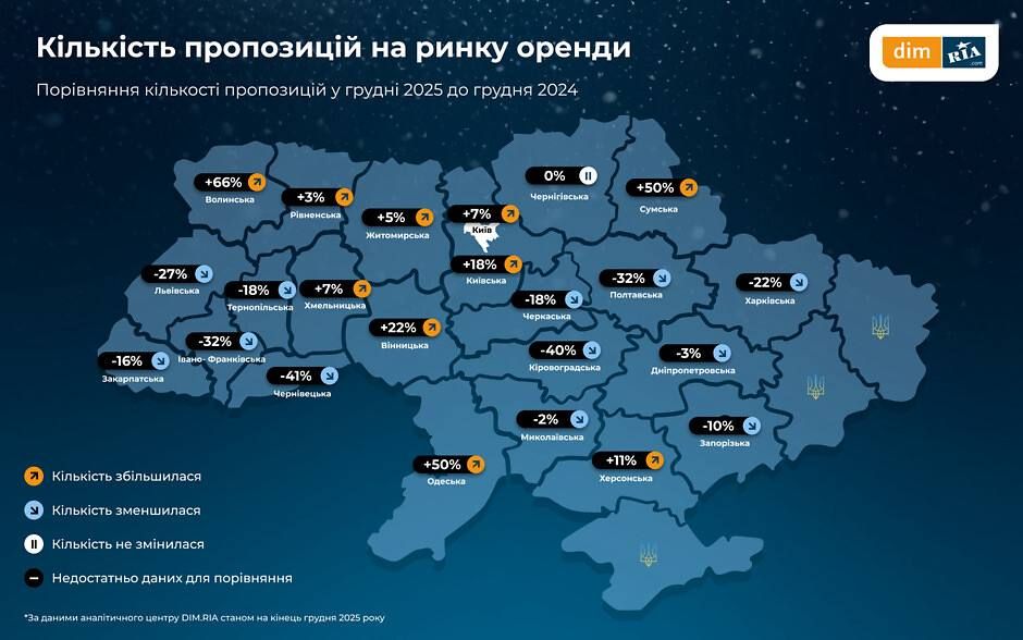 - Волинська область: +74% пропозиції рік до року.