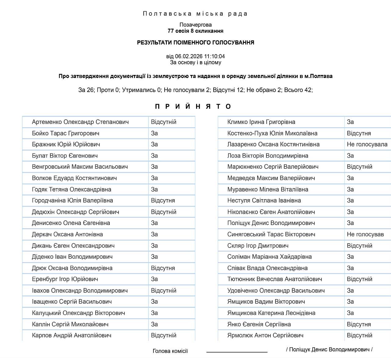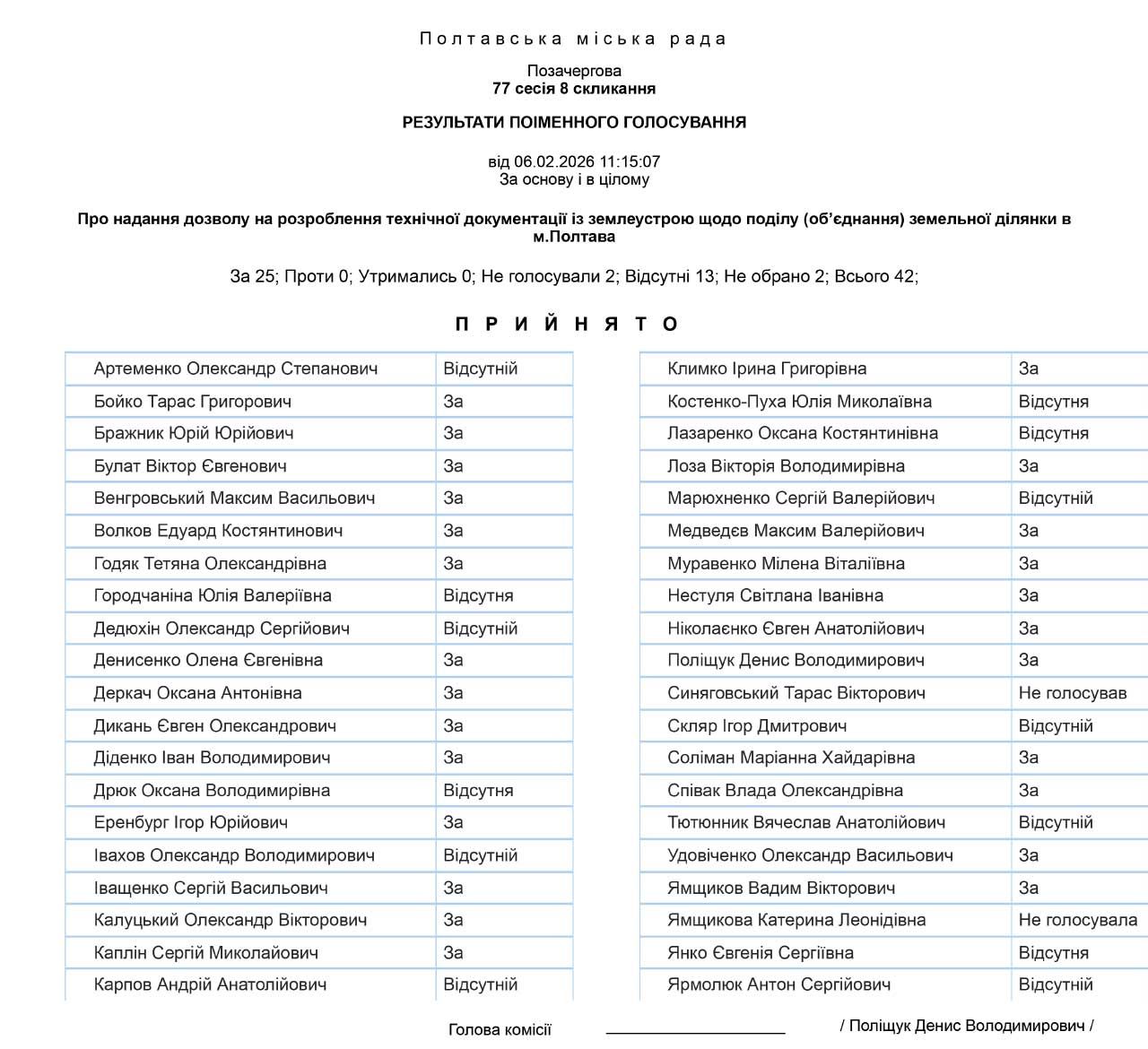 Результати поіменного голосування: