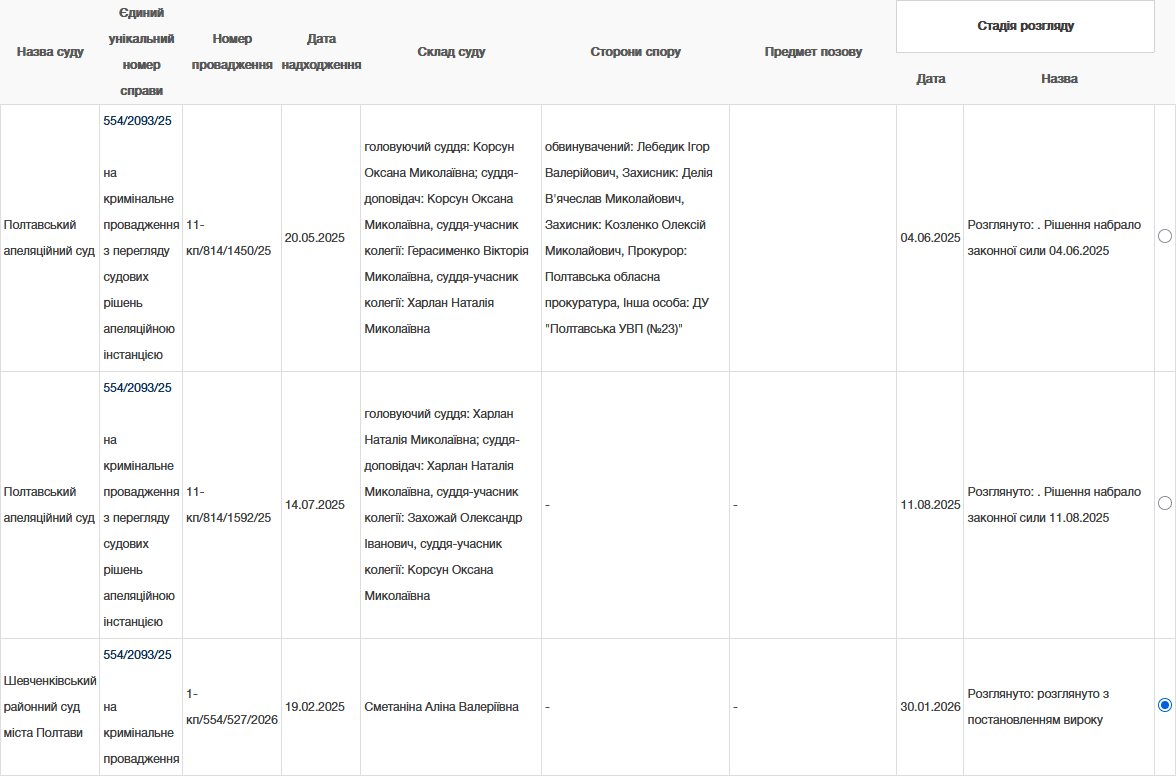 Інформація про судовий розгляд справи у Єдиному державному реєстрі судових рішень відсутні через специфіку справи. Тому деталі вироку ми дізналися завдяки власним джерелам у прокуратури області.