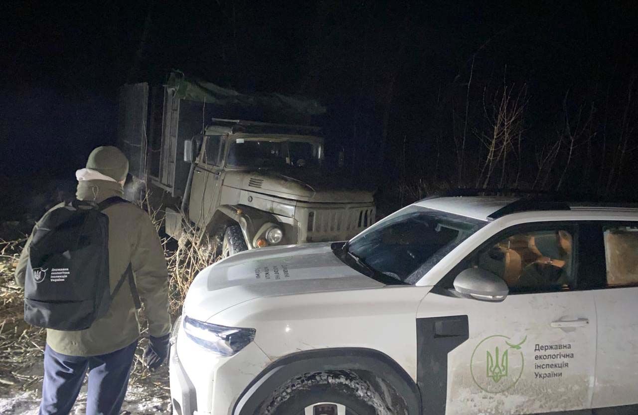 На місці події перебували особи, які здійснювали порубку без дозвільних документів. Інспектори зупинили два транспортні засоби та викликали працівників поліції.