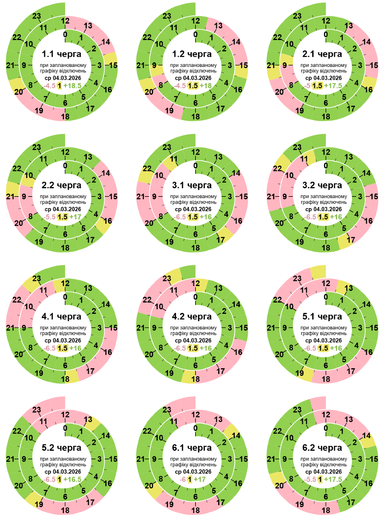 За інформацією АТ «Полтаваобленерго», запланований ГПВ передбачає наступне чергування: