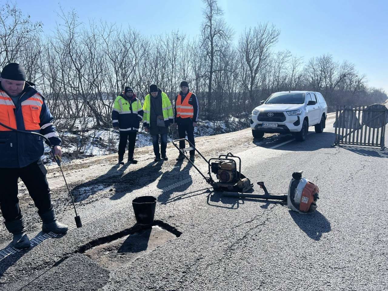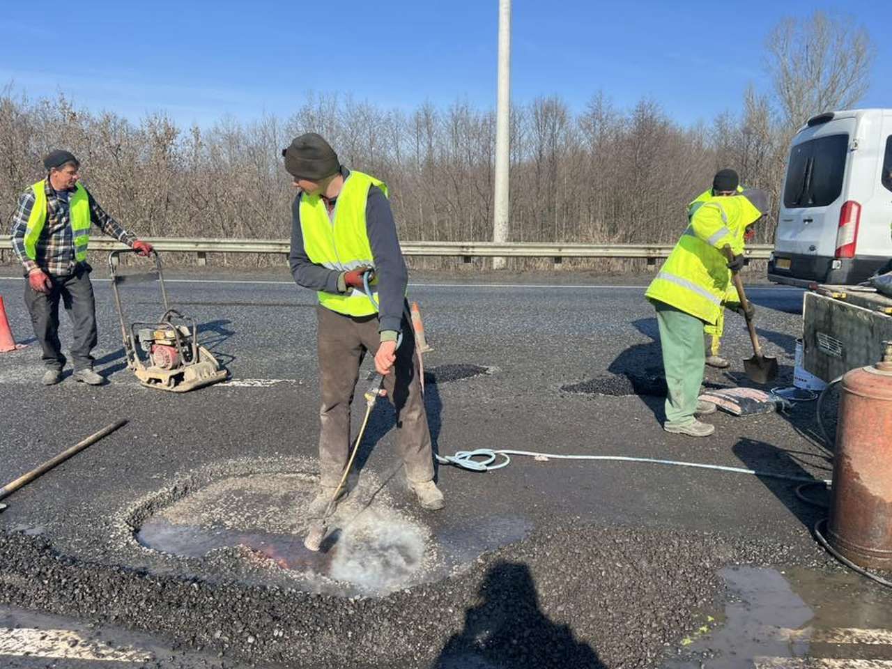 Через низьку температуру повітря дорожники наразі використовують метод холодного асфальтування — це дозволяє працювати в умовах, коли застосування гарячих сумішей ще неможливе.