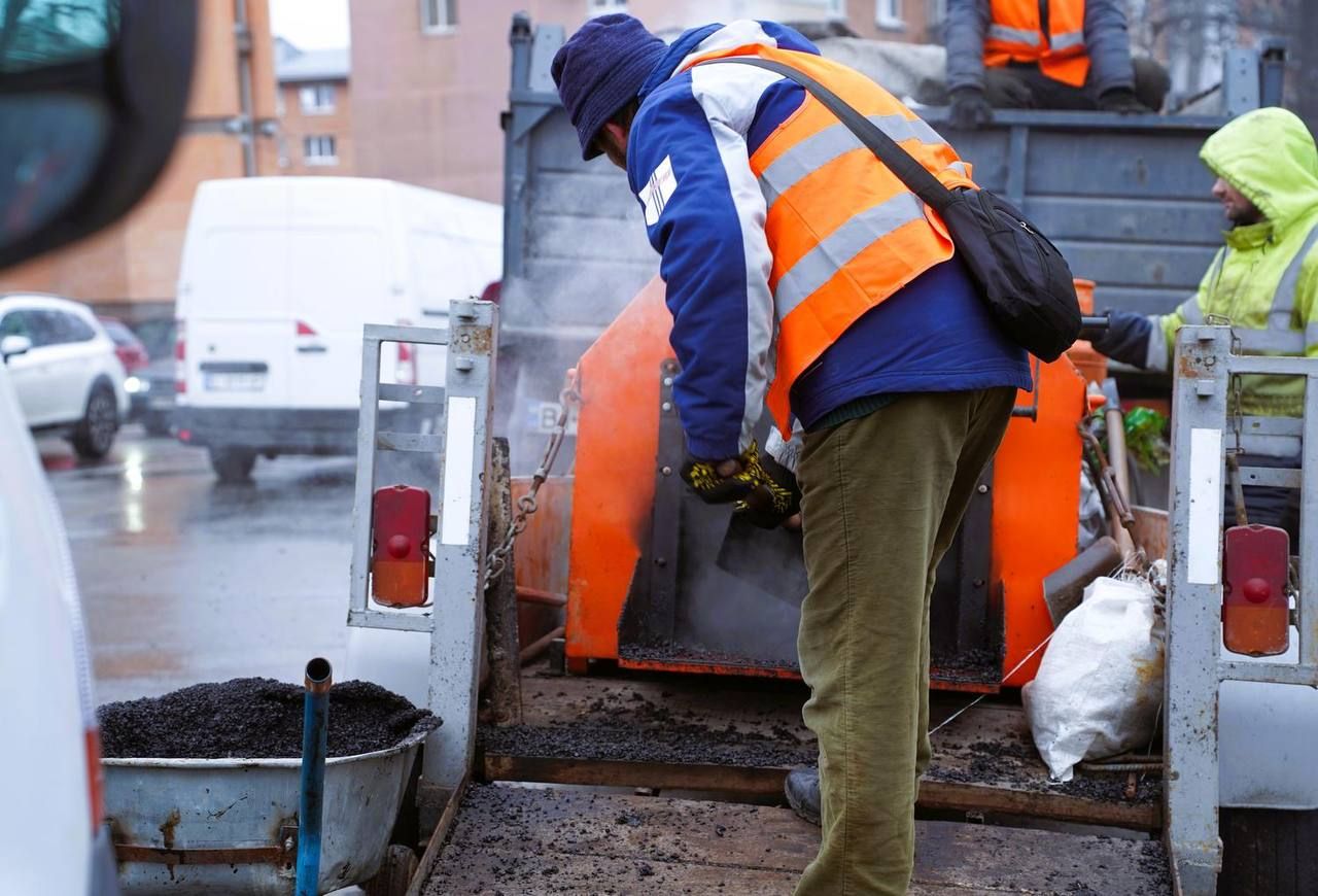 У перехідну пору року, коли температурний режим ще не дозволяє повноцінно працювати з гарячими сумішами, місто застосовує холодний асфальт. Ця технологія розрахована на аварійний ямковий ремонт і дозволяє укладати матеріал навіть за мінусових температур.