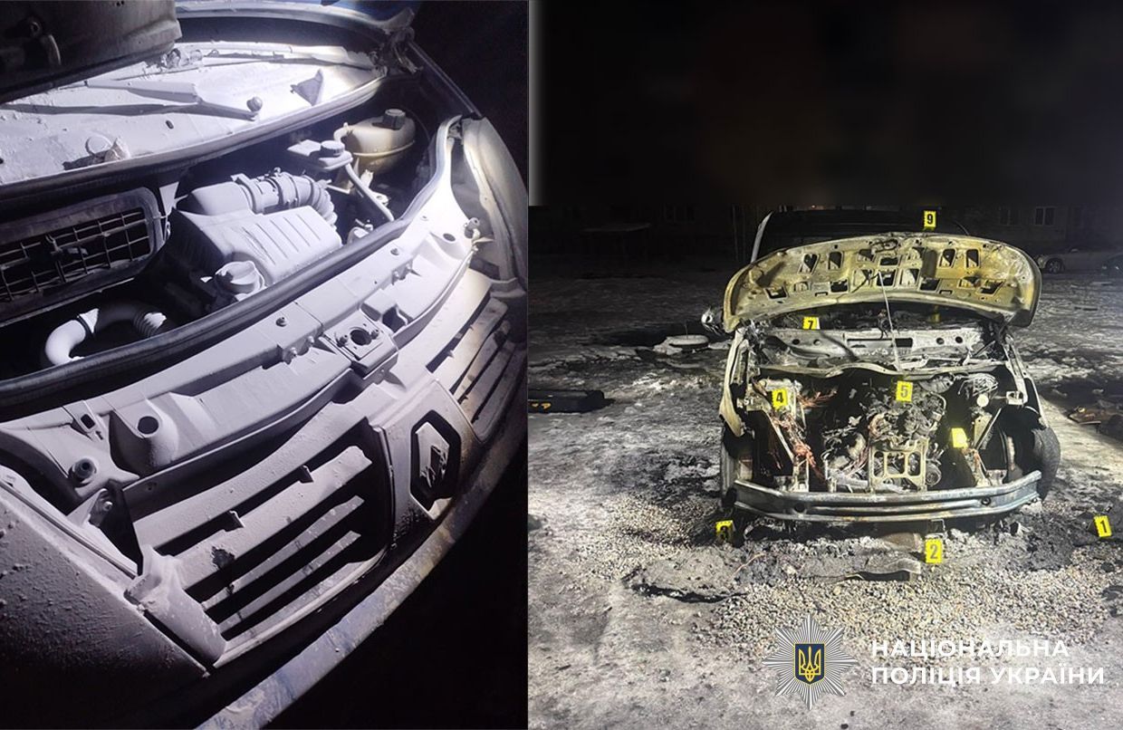 - Перший епізод. 23 лютого, близько 23:45, на вул. Олександра Оксанченка, 34. Дівчина облила легкозаймистою сумішшю передню частину синього мікроавтобусу Mercedes-Benz Vito 2019 року та підпалила його. Свої дії вона фіксувала на камеру телефона для звіту. Власник оцінив збитки у 734 тис. грн.