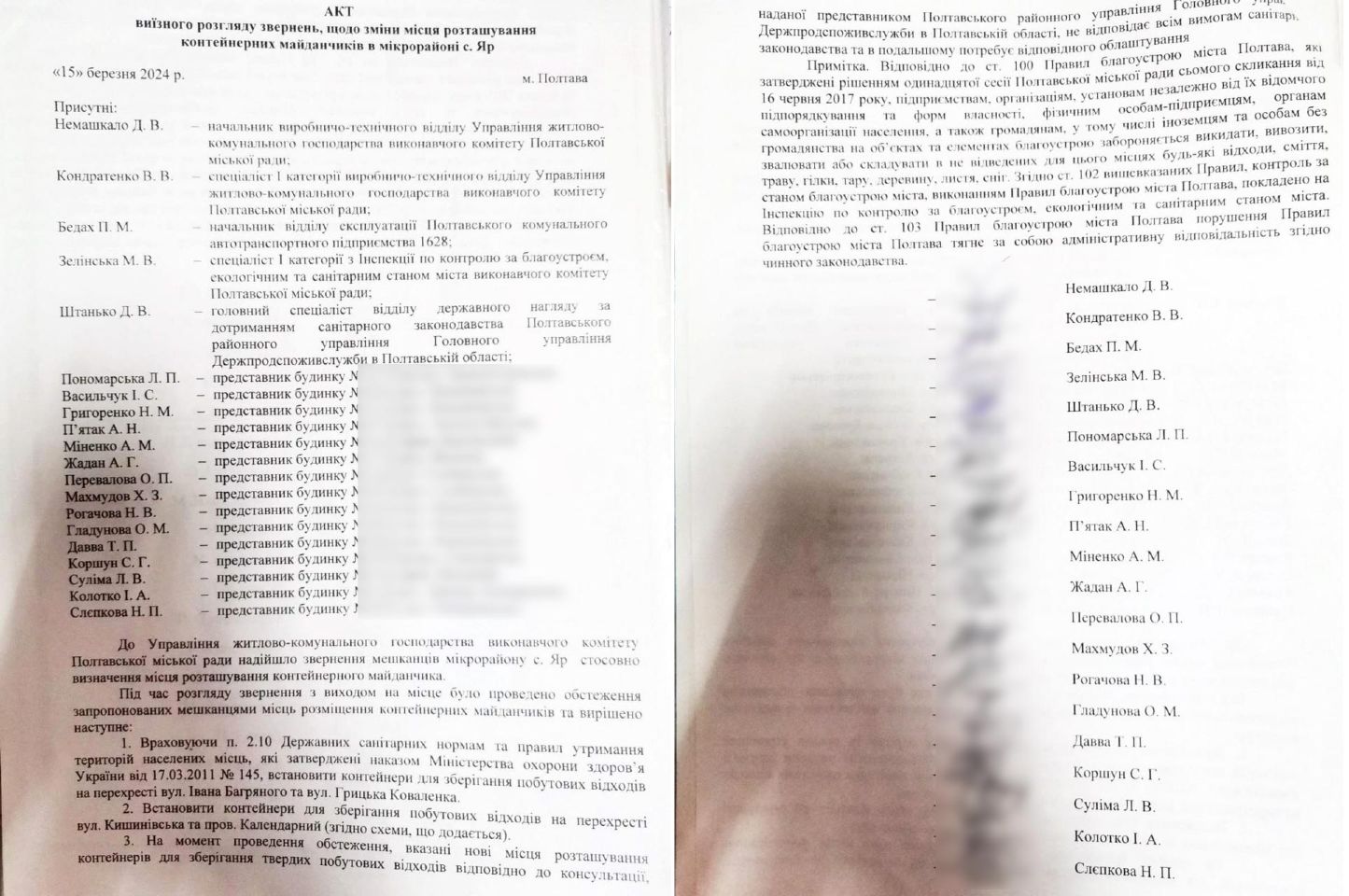 Після публікації звернення Валентини Голуб щодо будівництва сміттєвого майданчика у мікрорайоні Яр, до редакції «Полтавщини» звернулася представниця іншої частини громади — заступниця голови ОСН «Яр» Лідія Помаранська. Вона запевняє, що майданчик є результатом дворічної боротьби мешканців за чистоту, а протести окремих осіб ставлять під загрозу благоустрій усього мікрорайону
