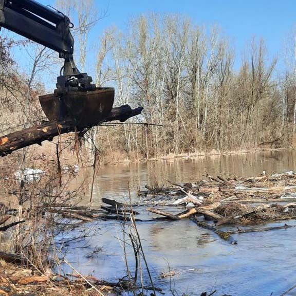 У Сем’янівці комунальники ліквідовують затор біля містка через Ворсклу