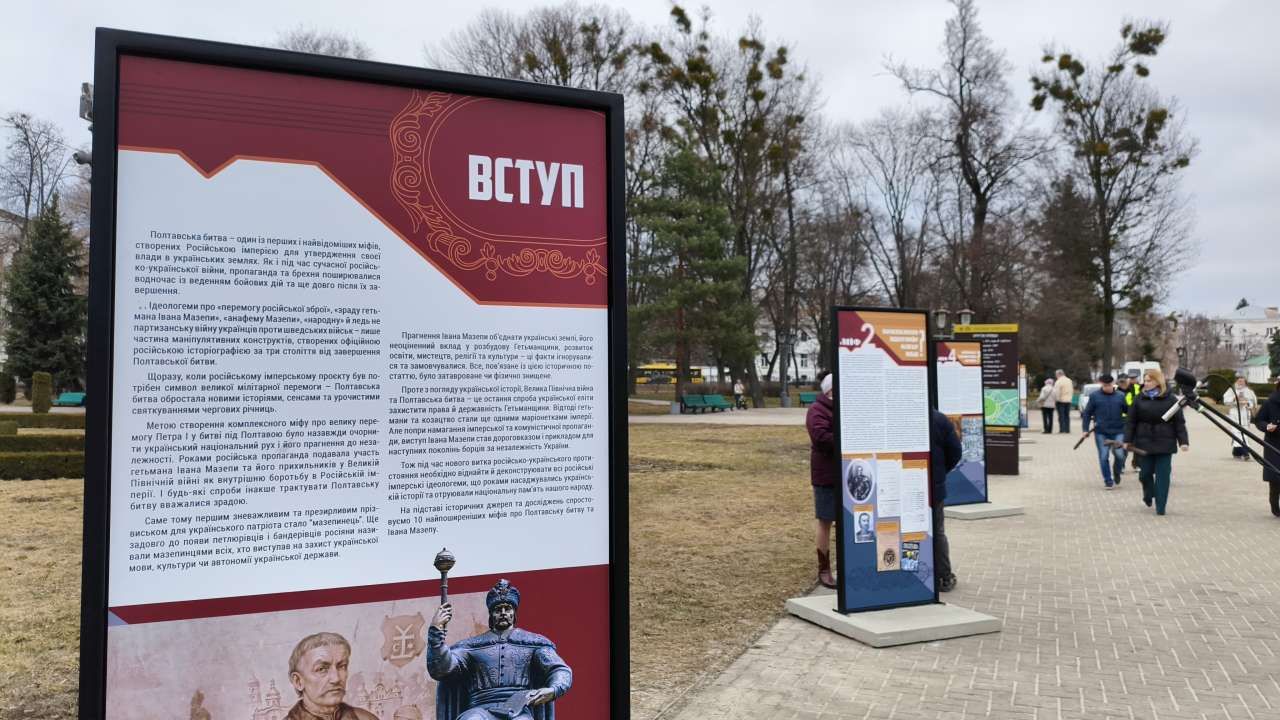 20 березня, у день 387-ї річниці від дня народження гетьмана Війська Запорозького та мецената Івана Мазепи, у Корпусному парку Полтави відкрили виставку «Мазепа. Karl ХІІ. Петро І. Топ-10 міфів роспропаганди».