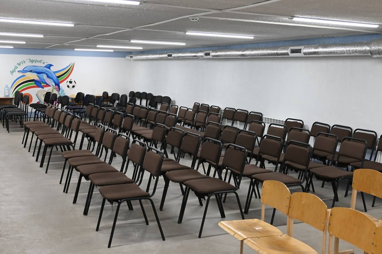 Перевірив укриття у Ліцеї 14. Простір тут організували так, щоб можна було перебувати тривалий період. Приміщення укриття поділили на зони, працює вентиляція й опалення, там тепло і сухо. Є дві санітарні кімнати, резервне освітлення, пожежна безпека та система оповіщення. Працює Wi-Fi.