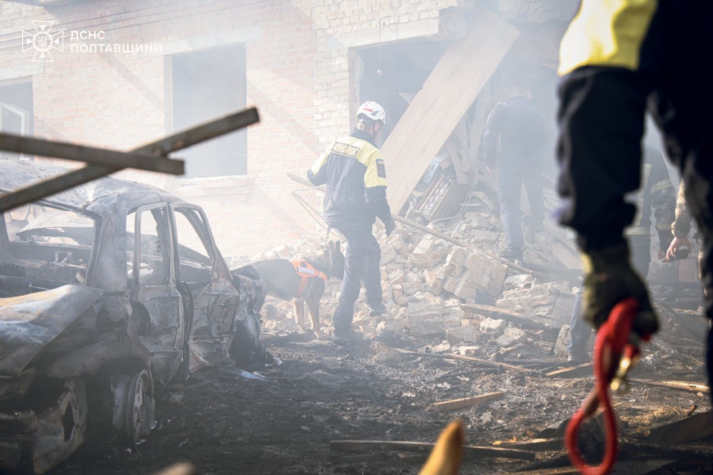 Станом на 18:30 у Полтавській громаді після падіння ворожого безпілотника зафіксовано пошкодження 13 домоволодінь. Вибито 38 вікон, пошкоджено чотири дахи різного ступеня, а також господарські будівлі та приватні автомобілі.