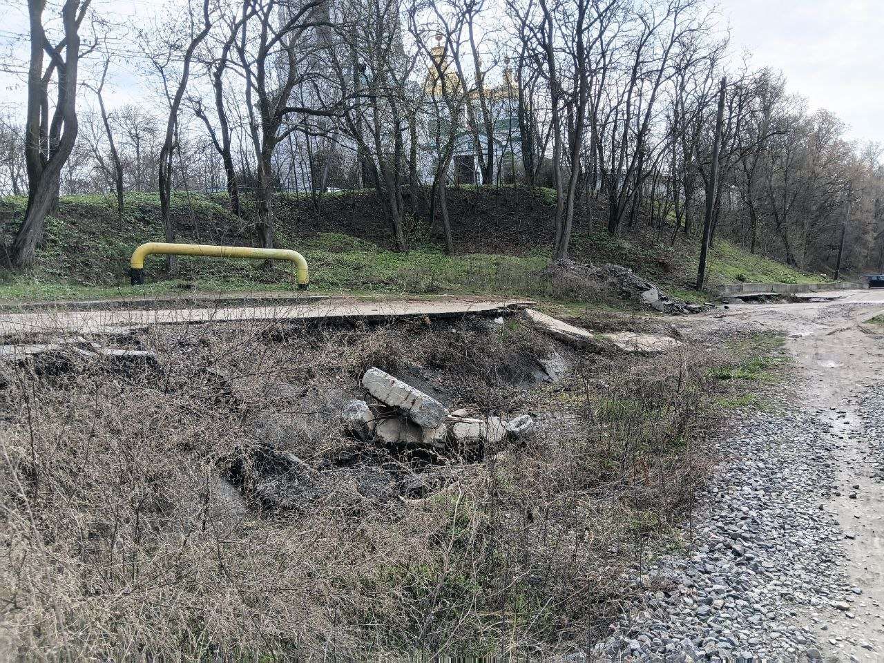 «Дорога продовжує руйнуватися, а недобросовісні водії продовжують їздити аварійною ділянкою та паркувати свої автомобілі прямо на трубах мережі «Полтавагазу», які після останніх ремонтів розташовані без асфальтового покриття на невеликій глибині. Місцеві жителі дуже цим занепокоєні, адже бояться посилення зсувних процесів і в подальшому руйнування газопроводу.