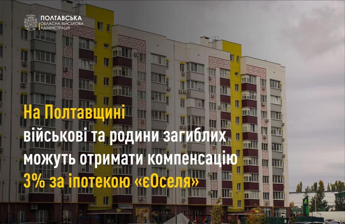 У Полтавській області військовослужбовці, ветерани та родини загиблих захисників і захисниць можуть отримати компенсацію частини відсоткової ставки за іпотечними кредитами в межах державної програми «єОселя».
