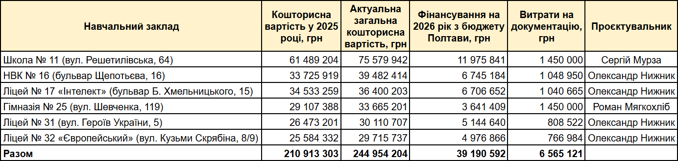 Актуальна загальна кошторисна вартість реконструкції становить 75,6 млн грн. Свою частку співфінансування Полтава вже передбачила: у міському бюджеті на 2026 рік на цей об’єкт закладено майже 12 млн грн.