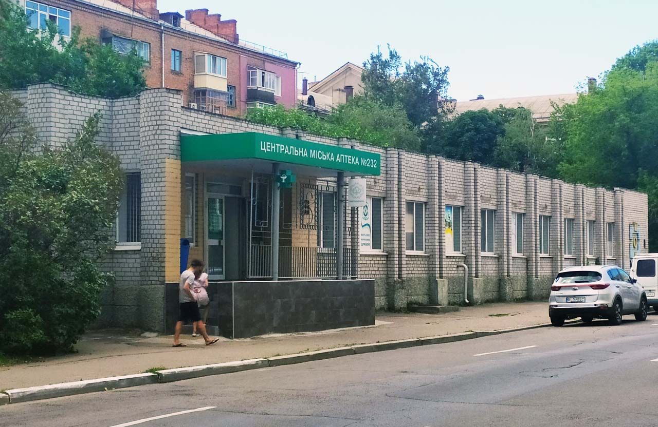 - м. Миргород, вул. Лікарняна, 1-Б — будівля аптеки