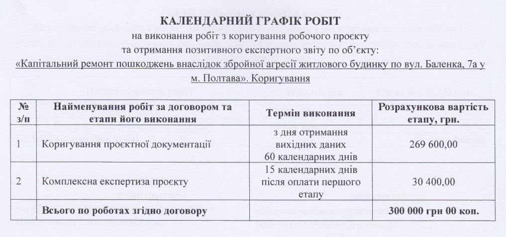 На 436-й день після удару Полтава замовляє коригування ще свіжої документації для Баленка, 7а