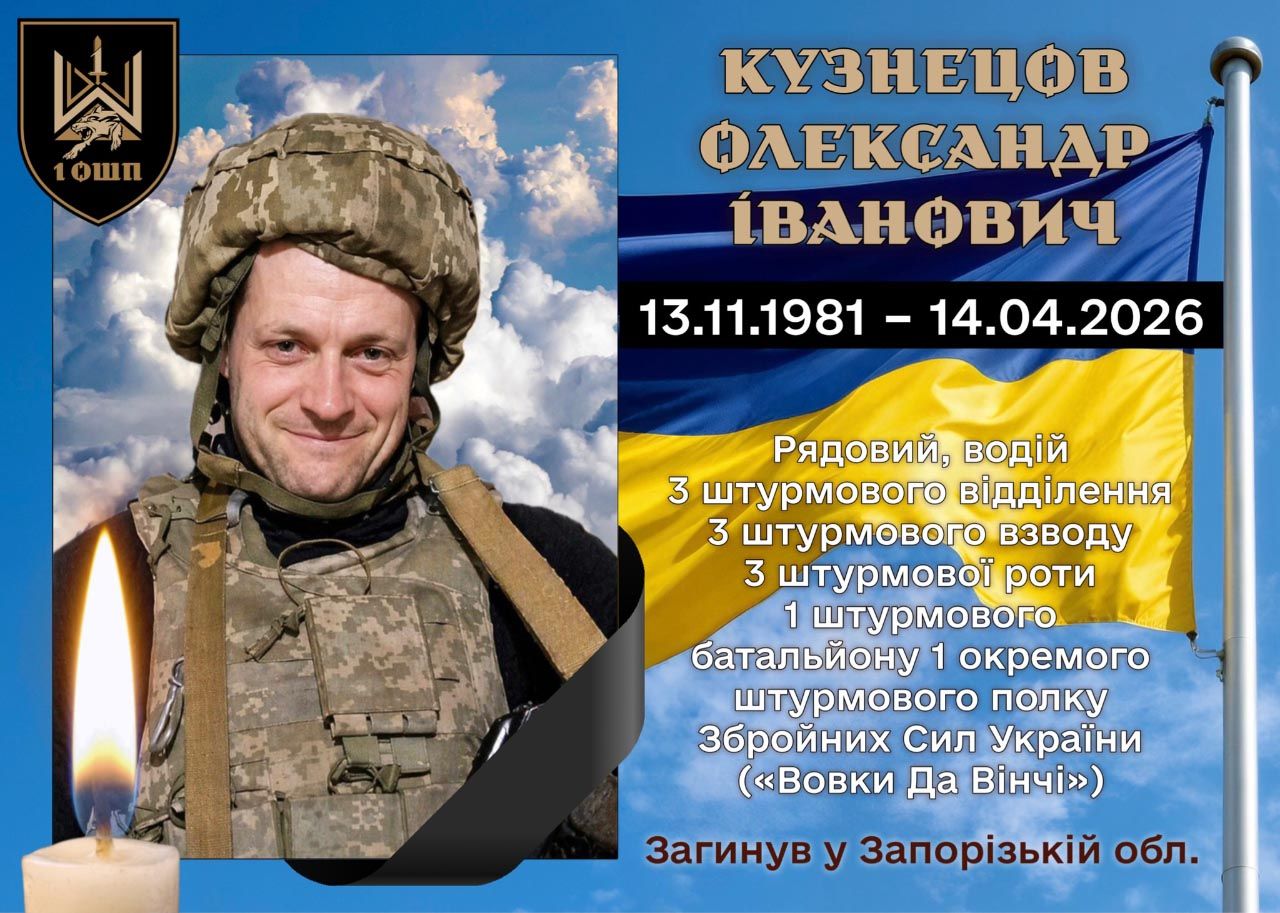 За інформацією Хорольської міської ради, 14 квітня 2026 року в Запорізькій області під час виконання бойового завдання Кузнецов Олександр Іванович — солдат, водій 1-го окремого штурмового полку «Вовки Да Вінчі».