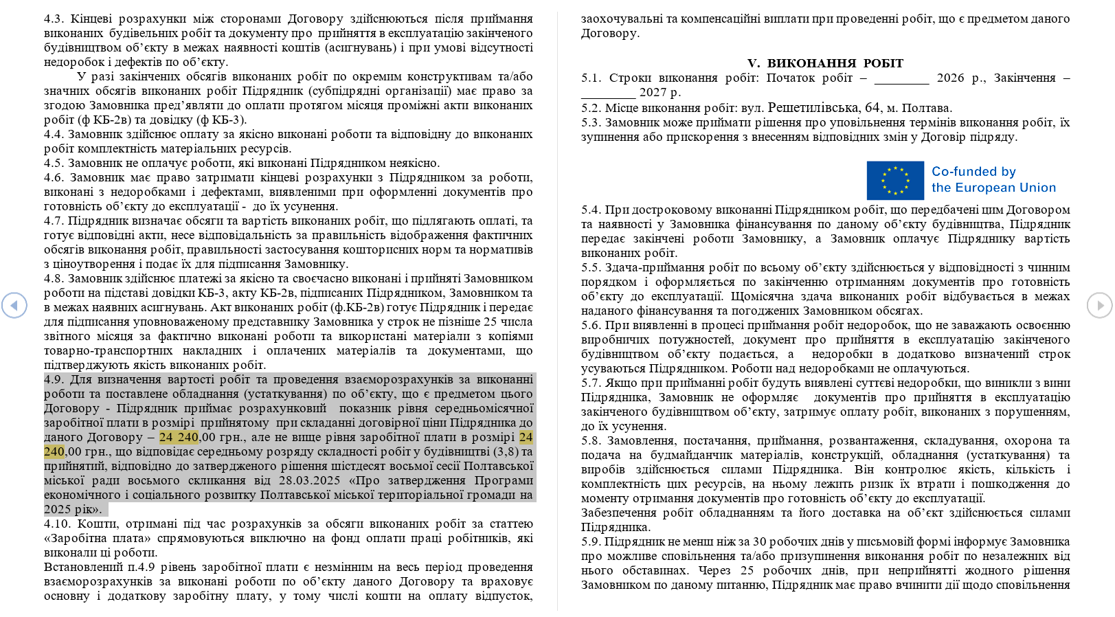 Однак найбільша колізія цієї закупівлі криється в оплаті праці самих будівельників. Проєкт реконструкції коригував полтавський ФОП Сергій Мурза, а експертний звіт щодо кошторису оновлювали 24 березня 2026 року. Попри це, у проєкті договору підряду УКБ чітко зафіксувало: розрахунковий показник рівня середньомісячної зарплати на цьому об’єкті становить 24 240 грн. Управління прямо посилається на рішення сесії Полтавської міськради від 28 березня 2025 року.